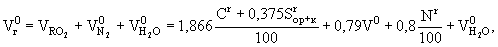При недостатке информации о составе сжигаемого топлива объем сухих дымовых газов может быть рассчитан по приближенной формуле