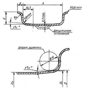 - размеры профиля обода А1, А2, В, G1 и G2 по примеру, указанному для профиля обода 6,5 (см. черт. 15).