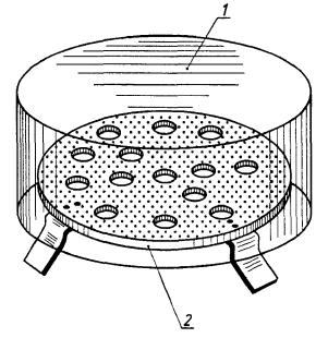 Вставка для эксикатора 1-128 или 1-175 по ГОСТ 9147 или круглая металлическая пластинка диаметром 140 - 190 мм с отверстиями диаметром 20 - 30 мм (черт. 2), или подставка пластмассовая с ребристой внутренней поверхностью любого типа.