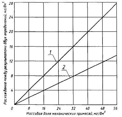 Расхождение между результатами двух последовательных определений, полученными одним лаборантом на одной и той же аппаратуре и пробе нефтепродукта в одинаковых условиях, признается достоверным (при доверительной вероятности 95 %), если оно не превышает 0,0002 %; для дизельных топлив - не превышает значение, указанное на черт. для большего результата.