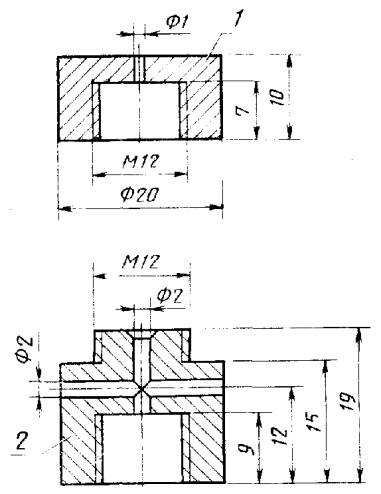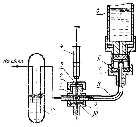 При монтаже и наладке хроматографа выполняют следующие изменения в схеме: на испаритель вместо накидной гайки навинчивают приставку (черт. 2), состоящую из корпуса, в котором просверлены канавки диаметром примерно 2 - 3 мм, и крышки приставки (размеры приставки указаны в миллиметрах).