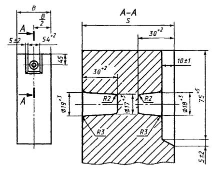 2.4. Для установки усиленной металлической подвески в изделиях со штыревыми отверстиями изготовляются углубления по рисункам 12 - 15. Размеры, не указанные на рисунках 13 - 15, должны соответствовать данным рисунка 12.