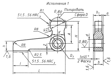 1. Конструкция и размеры угловых рычагов должны соответствовать чертежу и таблице.