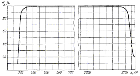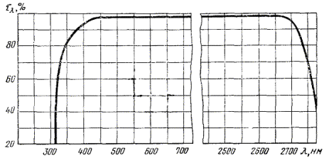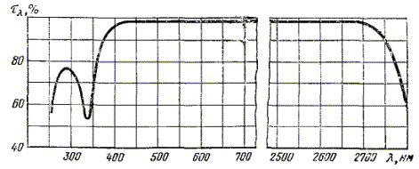 Спектральная кривая коэффициента пропускания τλ клея ОК-90 М