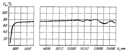 Спектральная кривая коэффициента пропускания τλ клея ТКС-1