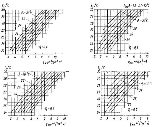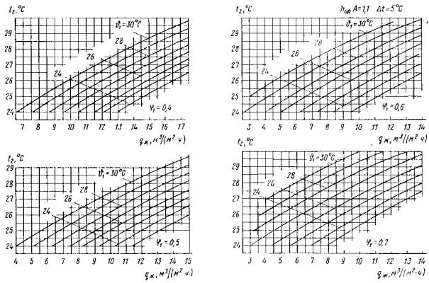 qж.п - плотность орошения с поправкой на скорость движения воздуха в градирне, определяемая по формуле (24), м3/ (м2 × ч);