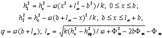 Если длина прямоугольного очага подтопления 2l превышает ее ширину 2L более чем в 5 раз, то прямоугольный очаг рассматривается как полосообразный с шириной 2L. Если l/L < 5, то прямоугольник приводится к круглому с приведенным радиусом rпр - по выражению [1, 4, 16]: