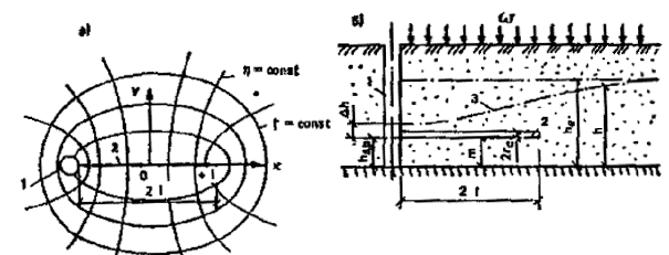 в слоистых пластах при фильтрации подземных вод параллельно слоям
