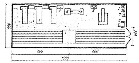 А - монтажный двор; Б - навес для лесоматериалов и труб; В - доставка; 1 - здание театра; 2 - производственные помещения