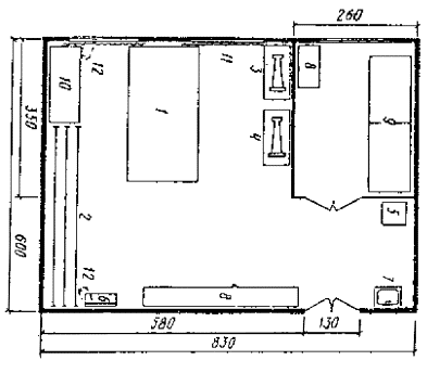 8. В здании театра проектируется как минимум две одноместные уборные (мужская и женская), рассчитанные на пользование инвалидами в креслах-колясках, либо специальные Кабины в многоместных уборных. Предпочтительное размещение такой уборной - с непосредственным доступом из распределительного вестибюля.