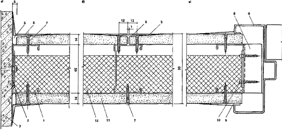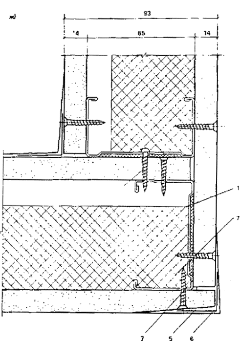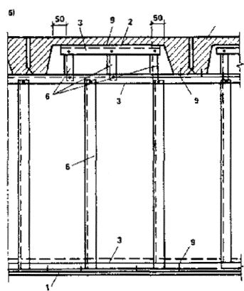 2.7. Асбестоцементный каркас перегородок представляет собой конструкцию, в которой верхние и нижние направляющие выполнены металлическими из холодногнутых стальных профилей толщиной 0,7-1 и шириной - 65 мм, а стойки - из асбестоцементных швеллеров, изготовленных методом экструзии.