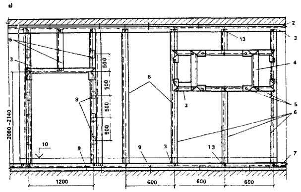 2.4. В зависимости от конструкции каркас перегородок может быть металлическим, деревянным или асбестоцементным (рис. 1).