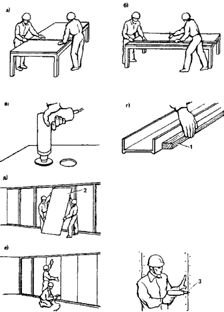Эффективность применения гипсокартонных перегородок, сборка которых производится в построечных условиях, в решающей степени зависит от совершенства применяемых технологии и приемов выполнения монтажных работ, инструментов и технологической оснастки.