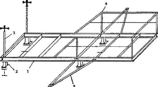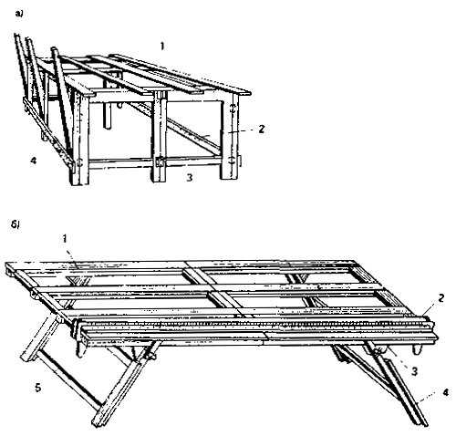 1 - стол; 2 - пила дисковая; 3 - опора центральная; 4 - опора задняя; 5 - винт стопорный; 6 - направляющая задней опоры