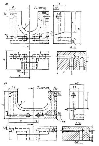 б) в горизонтальных соединениях, выполняемых на стальных скобах-накладках при установке двух накладок Fн ³ 1,2Fст (рис.14,а); при этом в накладках следует предварительно вырезать паз газовой резкой или прострогать его. При установке одной накладки Fн ³ Fст (рис.14.б).