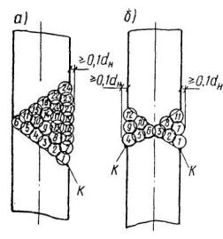 3. Сварные соединения, забракованные по баллу 1, усилению не подлежат. Такое соединение следует вырезать, поставить вставку длиной lвст ³ 75 мм и заварить вновь двумя стыками. При исправлении соединений равных диаметров вставка берется по диметру меньшего стержня. Направленные таким образом соединения вновь подлежат ультразвуковому контролю по приложению Г.