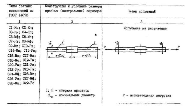 ГОСТ 14098-91 "Соединения сварные арматуры и закладных изделий железобетонных конструкций. Типы, конструкции и размеры";