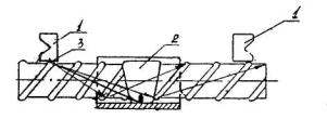 1 - сварной шов; 2 - накладка; 3 - дефект; 4 - протяженные сварные швы