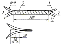 Концы отрезков должны быть разведены в противоположные стороны и в местах отгиба отделены друг от друга изоляционной прокладкой толщиной не более 0,2 мм (черт. 4).