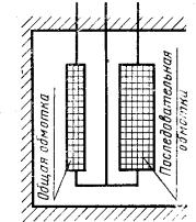 Силовой автотрансформатор, две обмотки которого имеют общую часть, а третья основная обмотка не имеет гальванической связи с двумя первыми обмотками (см. черт. 8) |