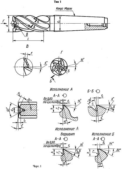 Размеры фрез указаны на черт. 3 и в табл. 3, 4.