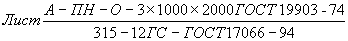 Прокат тонколистовой горячекатаный, повышенной точности прокатки (А), нормальной плоскостности (ПН), с обрезной кромкой (О), размером 3×1000×2000 мм по ГОСТ 19903, класса прочности 315, из стали марки 12ГС: