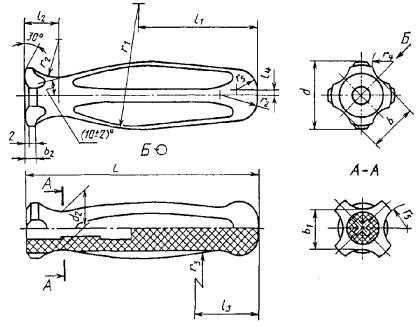 1. Размеры рукояток для отверток длиной l = 70 мм (черт. 10)