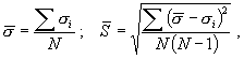 5.6. За результат испытаний принимают среднее арифметическое значение предела прочности при растяжении () и величину среднего квадратического отклонения (), вычисленные по формулам: