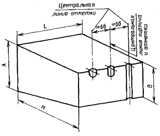 Выемки должны быть расположены либо по центральной линии рабочей поверхности кирпича, либо по линии, отстоящей от центральной примерно на 66 мм (черт. 1).