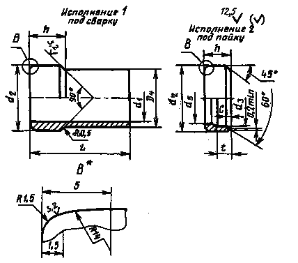 * Форма ниппеля на выносном элементе В - рекомендуемая.