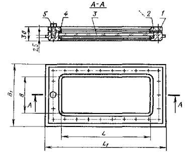 1 - корпус; 2 - рамка; 3 - стекло; 4 - прокладка; 5 - болт.
