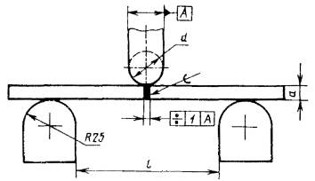 3.3. При установке на опоры продольная ось образца должна быть перпендикулярной оси изгиба.