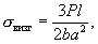 4.3. При определении предельной пластической деформации паяного соединения, характеризуемой нагрузкой и углом изгиба в момент появления первой трещины, рекомендуется рассчитывать предел прочности при изгибе (sвизг) МПа, по формуле