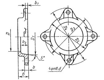 4. Материал фланцев - чугун марки СЧ 15 по ГОСТ 1412-85, алюминиевый сплав марки АК-7 по ГОСТ 1583-89, сталь Ст. 3 ГОСТ 380-88.