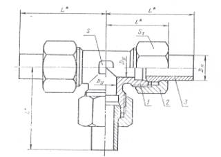 1 – тройник по ГОСТ 21862-78; 2 – накидная гайка по ГОСТ 23353-78; 3 – шаровой ниппель по ГОСТ 23355-78