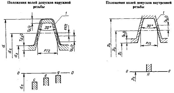 EI - нижнее отклонение диаметров внутренней резьбы.