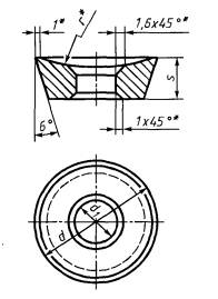 РЕЖУЩИЕ СМЕННЫЕ МНОГОГРАННЫЕ Конструкция и размеры Round throw-away (indexable) carbide shims with 6° end-dearance angle and concave daon top cutting surface. Design and dimensions |