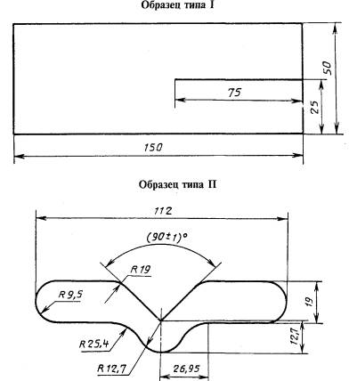 для метода Б - образец с концентратором напряжения под углом 90° типа II.