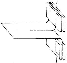 3.2. Устанавливают расстояние между зажимами 75 мм для образца типа I и 50 мм для образца типа II и закрепляют образцы. Для образцов типа I наибольшая ось должна совпадать с центрами зажимов (черт. 1а), для образцов типа II линия раздира должна быть перпендикулярна линии центра зажимов.