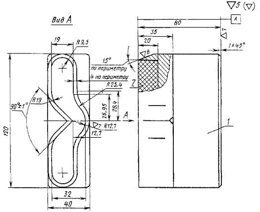 Приспособление для вырезания образцов типа II (черт. 2) состоит из корпуса 1 и резиновой вставки 2.