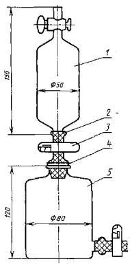 1 - склянка; 2 - шланг; 3 - зажим; 4 - пробка; 5 – склянка с тубусом |