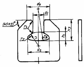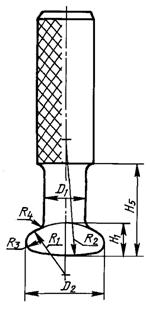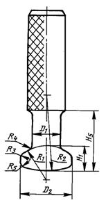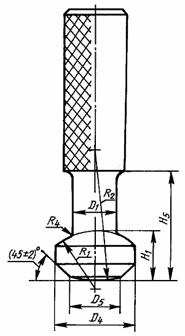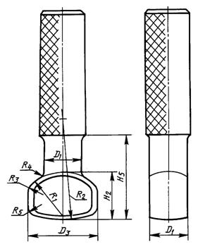 Основные размеры, задающие форму пестика, - h1, d2, r1, r2. Размер r3 дан для справки, поскольку его точное значение может быть получено только геометрическим построением. Кроме того, значение диаметра пестика d1 не должно превышать значений, указанных на длине, равной H3 соответствующего изношенного подвесного проходного калибра (см. пункт 11).