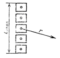 Для расположенных в одну линию источников шума примерно одинаковой мощности в количестве п штук, например ряда накопителей на магнитной ленте или накопителей на сменных магнитных дисках расчет (L(rv)А) проводят путем учета еще одной поправки DLn по формуле