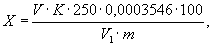 250 - объем дистиллированной воды, приливаемый к навеске исследуемого материала, см3;