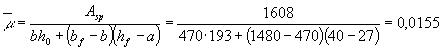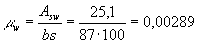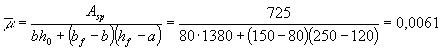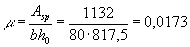 m - коэффициент армирования, определяемый как отношение площади сечения арматуры S к площади поперечного элемента bh0 без учета свесов сжатых и растянутых полок;
