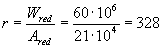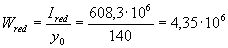 Wred - момент сопротивления приведенного сечения для крайнего растянутого волокна, определяемый как для упругого тела по формуле