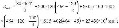 - статический момент площади приведенного