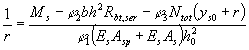 r - расстояние от центра тяжести приведенного сечения до ядровой точки, наиболее удаленной от растянутой зоны, трещинообразование которой проверяется.
