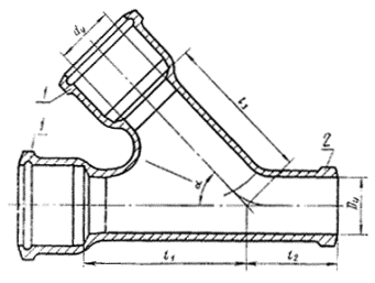 2. Конструкция и размеры косых тройников должны соответствовать указанным на чертеже и в таблице.