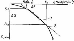 За Рsl  принимают давление, соответствующее точке перегиба  графика  для грунта, испытываемого в насыщенном водой состоянии. При нечетко выраженном перегибе графика за Psl принимают давление, при котором просадка грунта в основании штампа составит